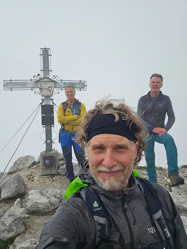 Abstecher von Etappe 14 des "Pinzga Hatscha": Markus Hirnböck , ALPIN-Portalmanager Holger Rupprecht und Robert Demmel (v. l.) am Gipfel des Hochzint (2.246 m).