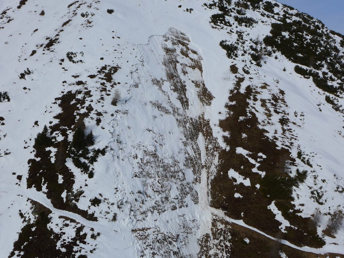 Obwohl das Schneebrett im Durchschnitt nur etwa 20 bis 30 cm mächtig war, konnte sich der Bruch dennoch über eine größere Fläche fortpflanzen.