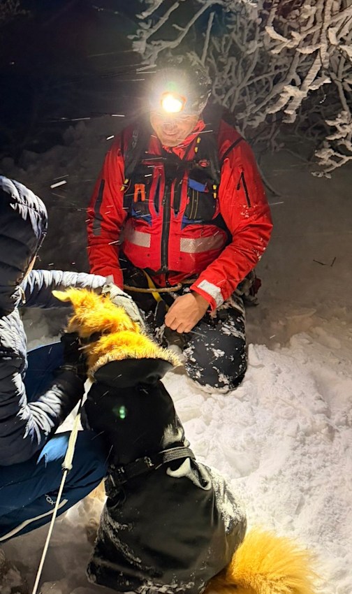 Anschließend konnte ein am Seil gesicherter Bergretter zu dem Hund absteigen und ihn zurück nach oben aufs Plateau bringen. Die Helfer übergaben das Tier unverletzt an seine sichtlich erleichterte Besitzerin.